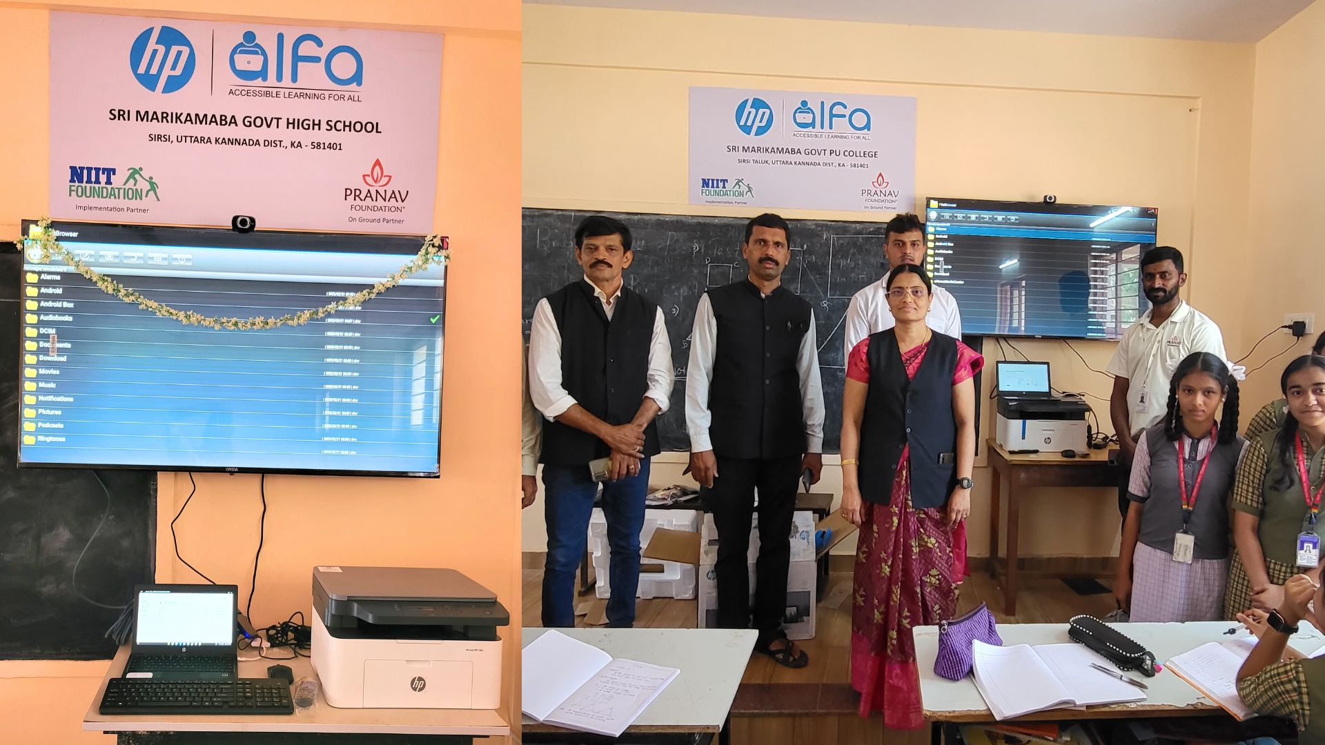 Pranav Foundation’s first Digital Classroom was implemented in Sri Marikamba Govt High School, Sirsi of Uttara Kannada District, with the aim of providing quality digital education to rural children. The school, with around 1200 students, all from rural villages, now has access to skill development trainings, syllabus-related video content, and methods for using online meetings. In addition to providing the necessary equipment, Pranav Foundation is also training the school teachers to effectively use the digital classroom, ensuring seamless delivery of content. The digital classroom was inaugurated on June 15th, 2023, in the presence of the School Head Master Sri. Rajesh Naik, all teachers, and the DDPI, who appreciated Pranav Foundation’s efforts in uplifting rural government schools. Entire children are thanking HP India for supporting the digital classroom through HP-ALFA project and NIIT foundation as NGO Partner and to providing the digital content.