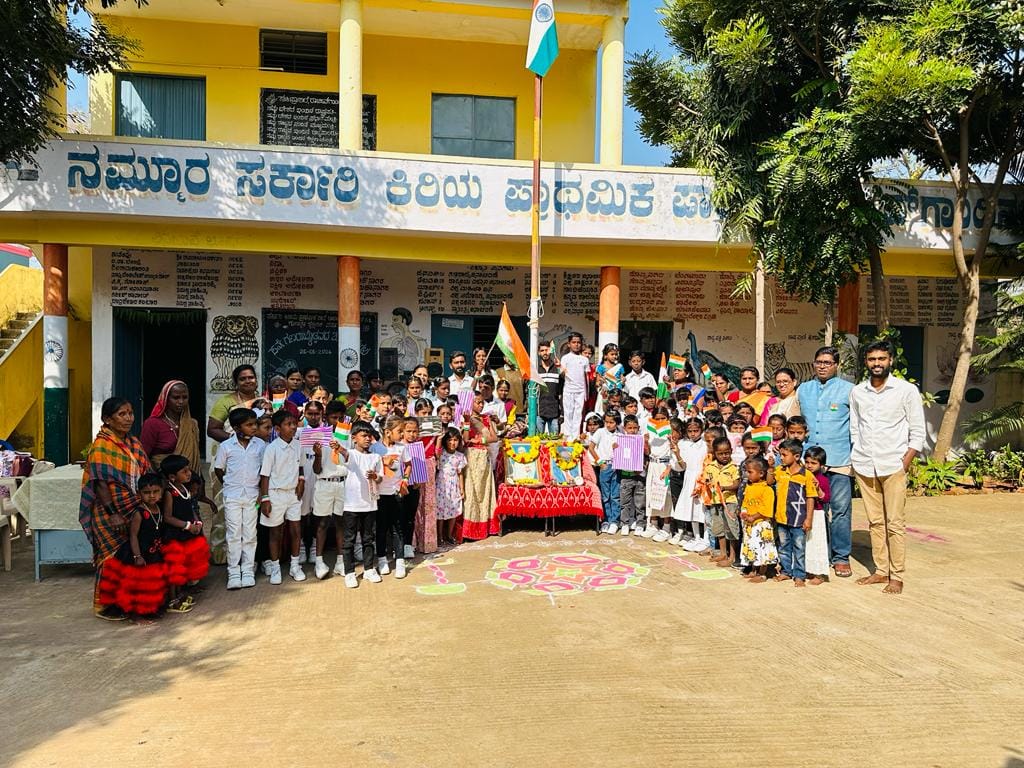 On the occasion of the 75th Republic Day celebration on January 26th, 2024, Pranav Foundation’s team members organized patriotic competitions for the students of GPS Rajiv Gandhi Nagar, Bangalore Rural District, a government school with around 90 students from 1st to 5th Std. The response from the students was overwhelming, with enthusiastic participation in all the events.