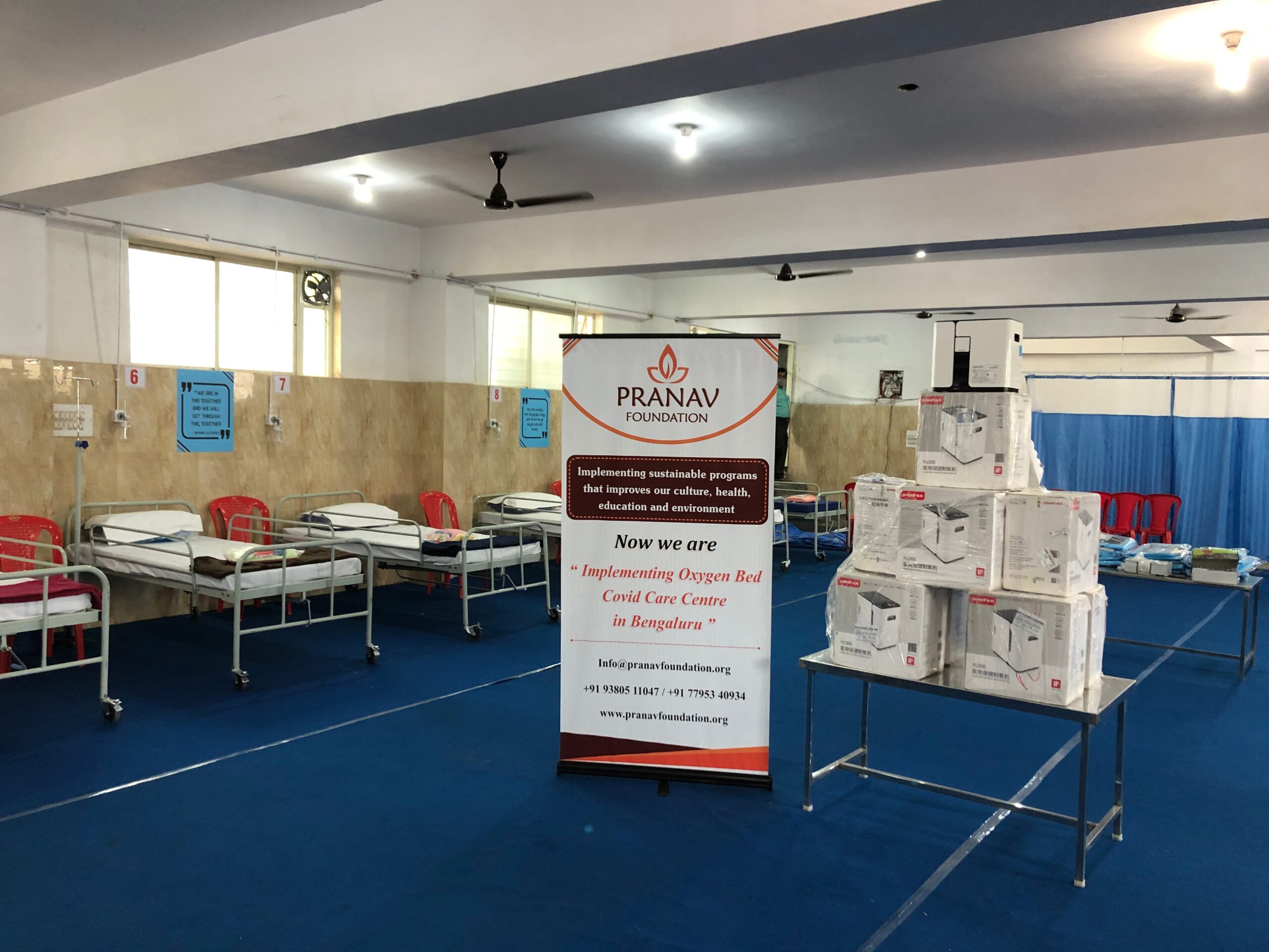 During the CORONA pandemic, we started the Covid Care Centre with 20 Oxygen Beds in association with Habitat For Humanity India, Act India Foundation in Sathya Ganapathi Temple Auditorium, JP Nagara, Bengaluru. The launch of this CCC is aimed at helping in the recovery of more than 500 COVID patients in the next 4-6 months.