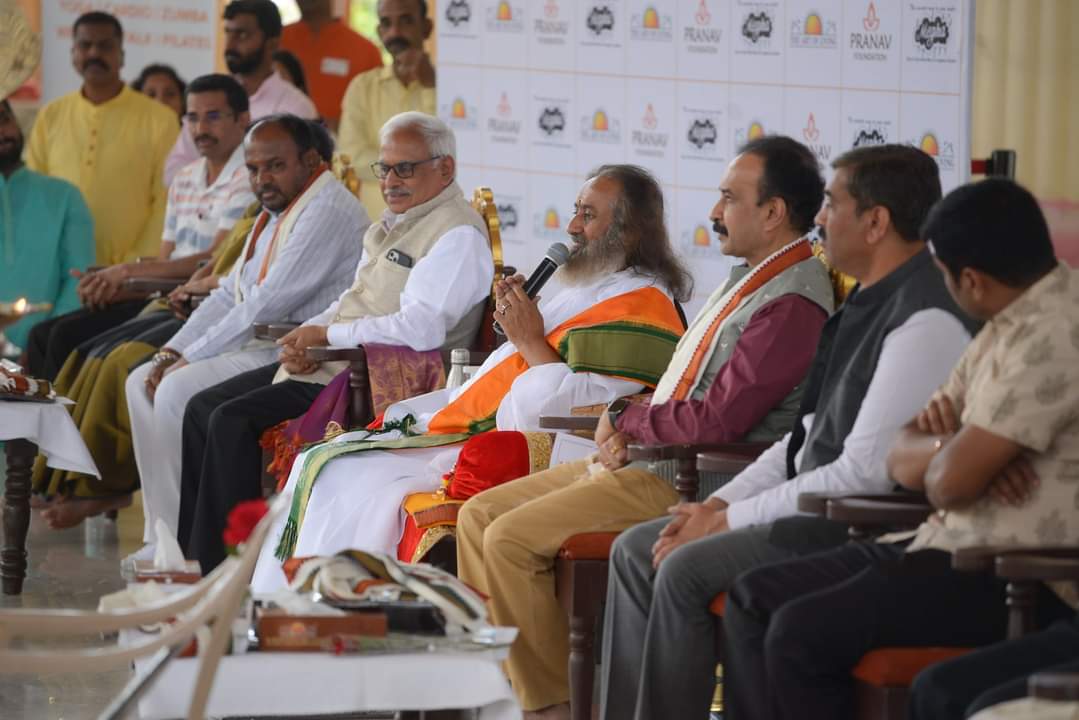 Pavitra Parisara and Swachha Halli Swachha Desha have always been two of our major projects in line with our central government’s Swachh Bharat Abhiyan program. We are in talks to adopt around 20 villages under this program. At present, our targeted villages are in and around NH209. We are positive about our innovative efforts to ensure fruitful results. In this project, we would be supported by like-minded individuals and other private institutions. Hence, we would work collaboratively to carry forward our job with success. We are here to create a positive change, and we are sure to achieve it with our collective efforts. In the presence of the guests and visitors to the program, Gurudev Sri Sri Ravishankar launched the official Pranav Foundation Website at the Vishalakshi Mantap.