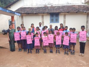 As part of the Pustaka-2023 Project, the team in Kodagu district identified needy children from two schools in rural villages of Somwarpete Taluk. This initiative brought smiles to 120 children and motivated the team to reach even more children in 2024. Mr. Rakshith K P,  Trustee, played a crucial role in identifying these deserving children at the ground level.