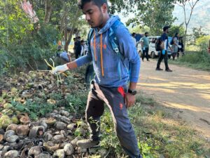 The collective efforts of these volunteers resulted in the collection and disposal of over 100 plastic items, including bottles, papers, straws, and food plates, which were sent to the Gram Panchayath segregation center. Initiatives like these not only contribute to the cleanliness and preservation of natural habitats but also serve as a source of motivation for youth volunteers to engage in more such activities throughout the year.